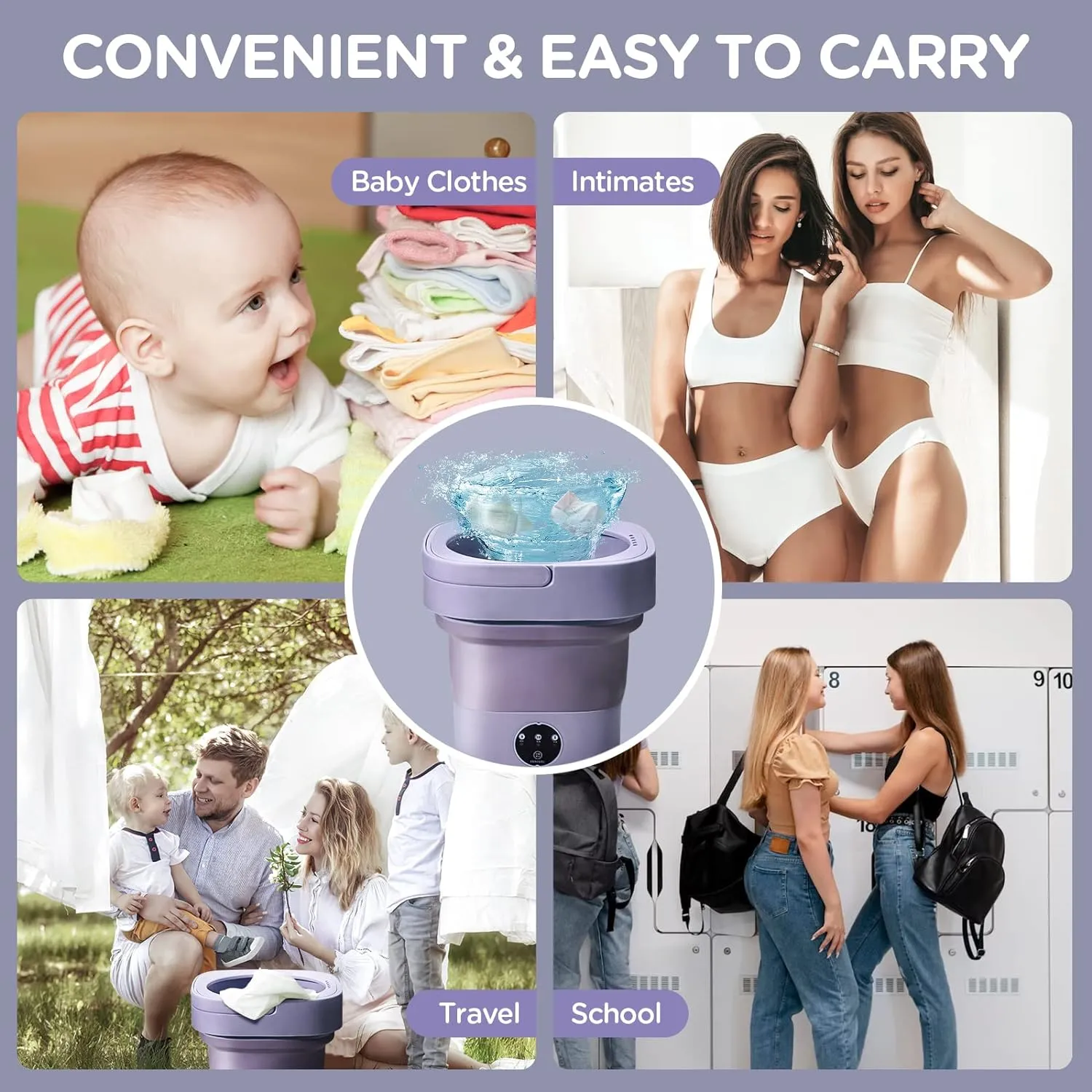 - Polyvalente : Que ce soit pour les chaussettes, les sous-vêtements, les maillots de bain ou d'autres petits articles, cette machine à laver portable est adaptée à une variété de vêtements et d'accessoires.