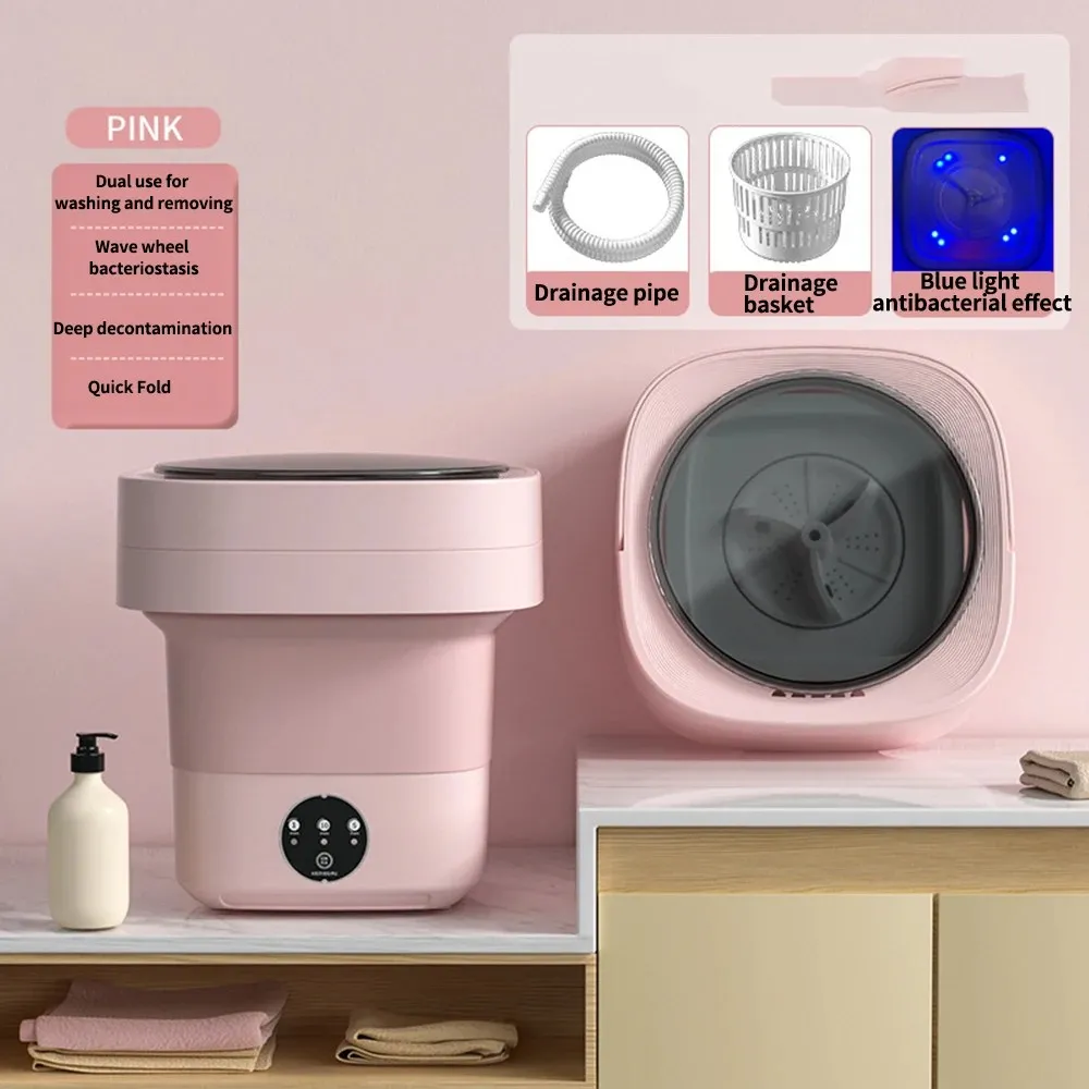 - Portable et Compacte : Cette mini machine à laver est conçue pour être légère et facile à transporter. Elle se plie en un format compact pour un rangement pratique dans vos bagages ou votre sac à dos.