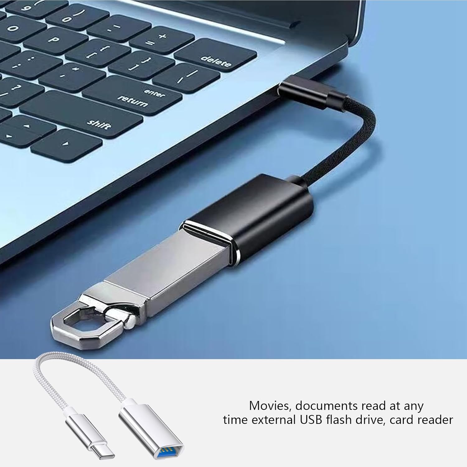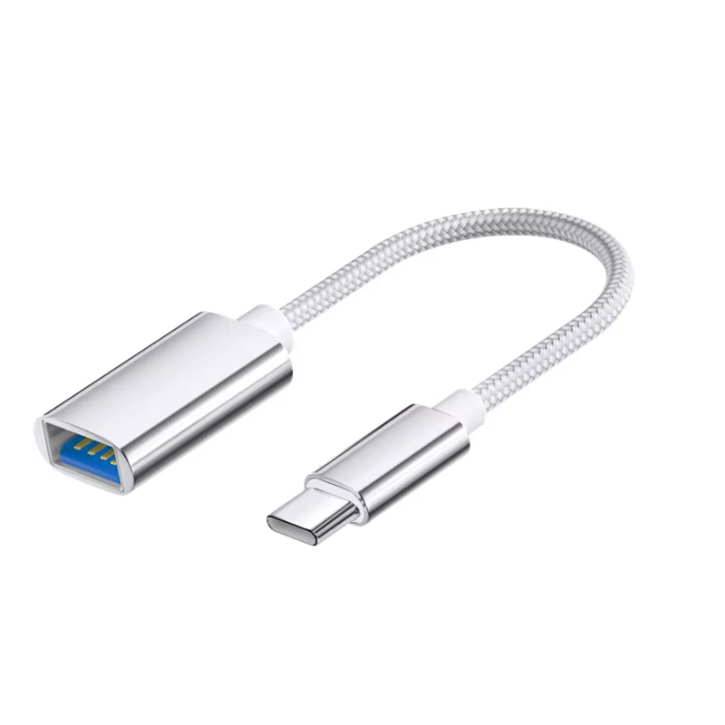 Câble adaptateur pratique permettant la connexion entre appareils USB-C et USB, conçu en cuivre tressé pour une meilleure durabilité et une utilisation quotidienne fiable avec tablettes et téléphones.