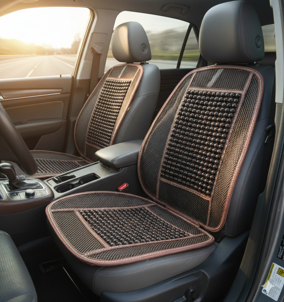 Housses de siège auto confortables avec base en bois, conçues pour améliorer le soutien et protéger le siège du conducteur tout en apportant une touche élégante.