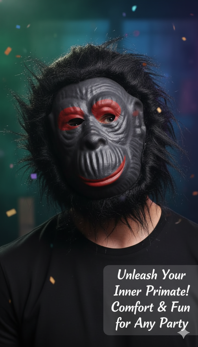 Masque de singe doux et confortable, parfait pour compléter un déguisement amusant ou effrayant lors d’Halloween, carnaval et fêtes costumées.