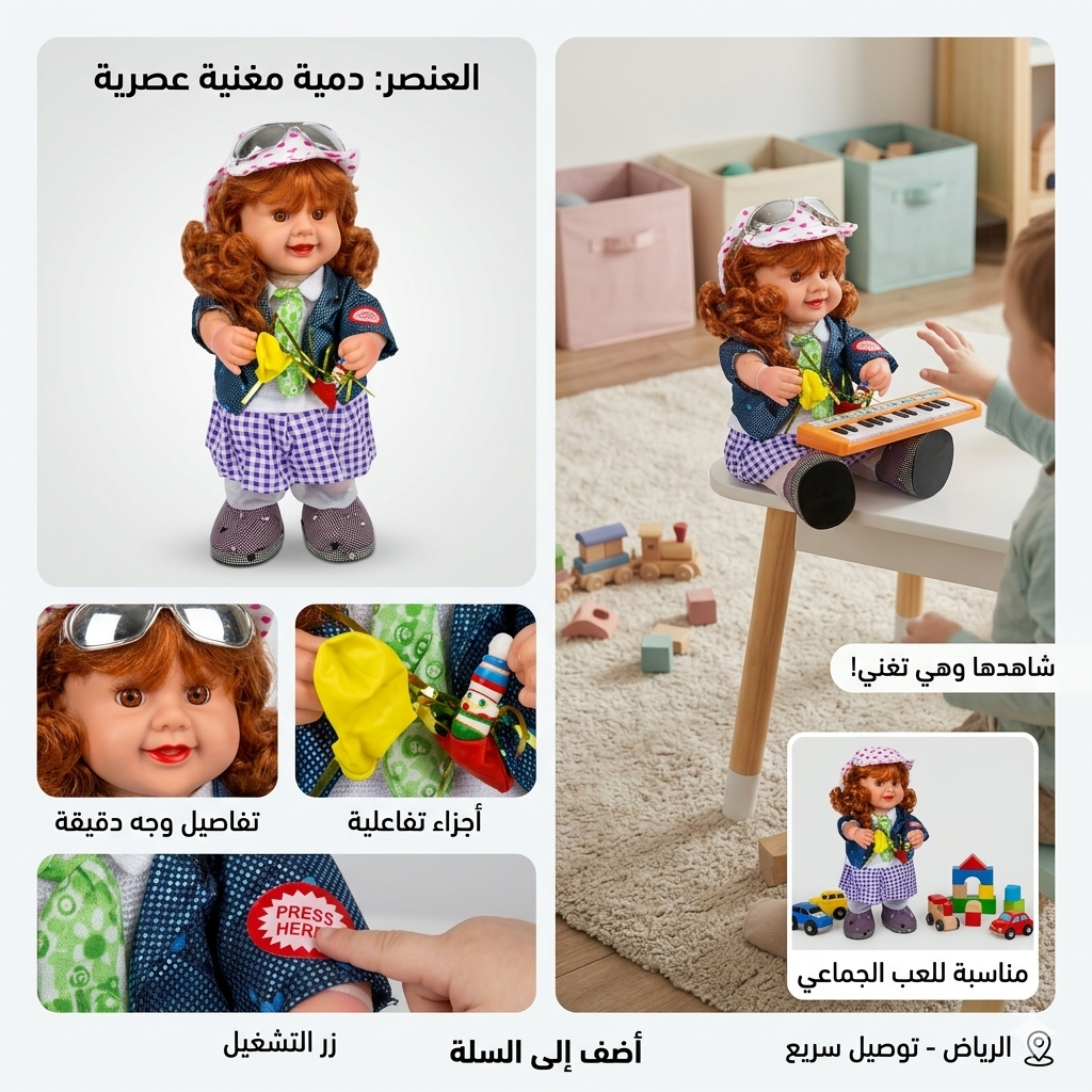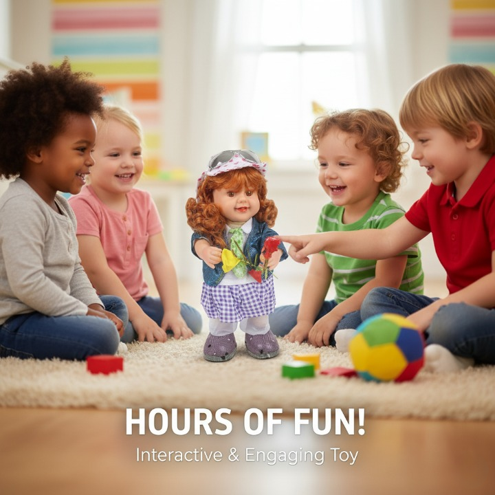 Poupée amusante qui danse et joue de la musique pour divertir les enfants et stimuler leur imagination pendant le jeu.