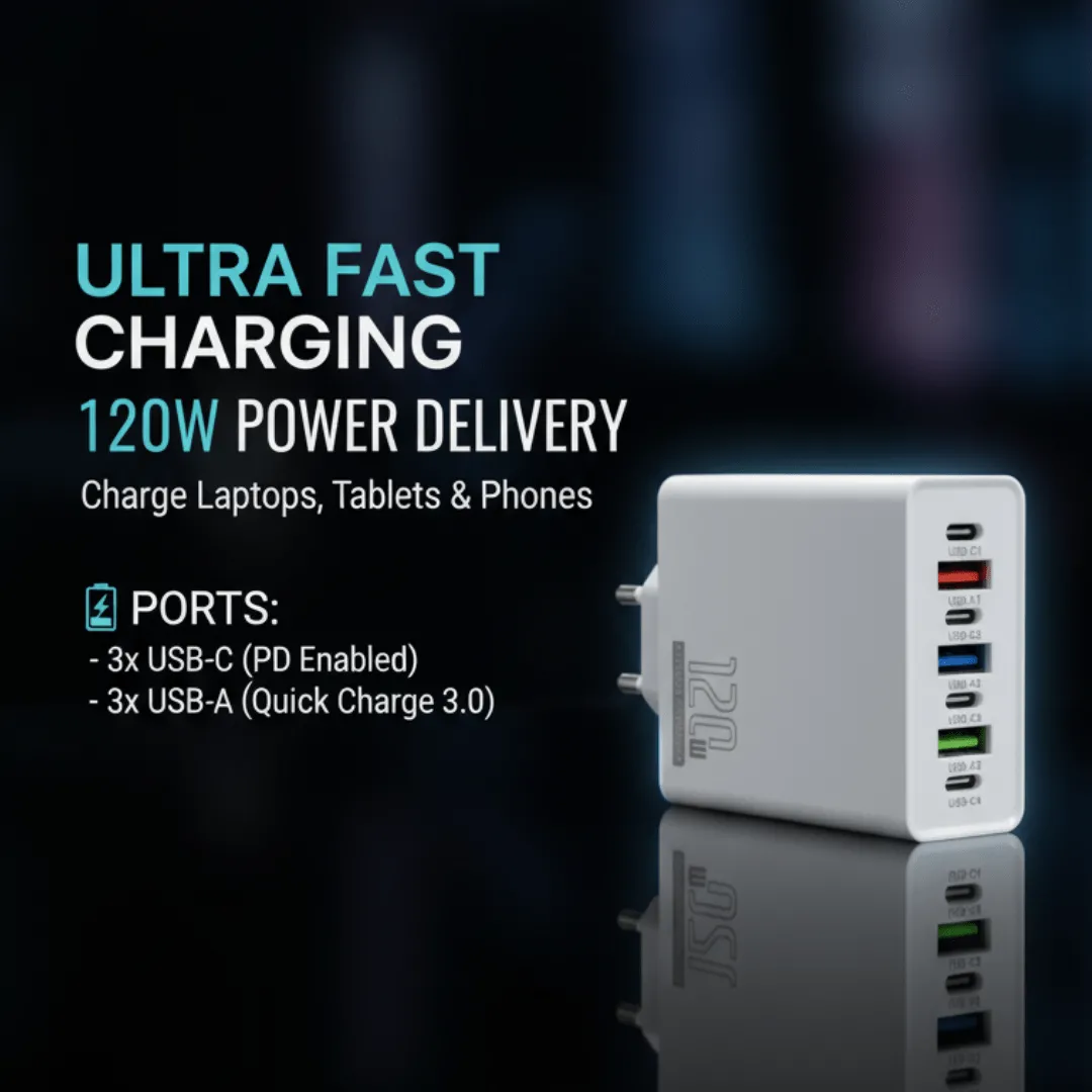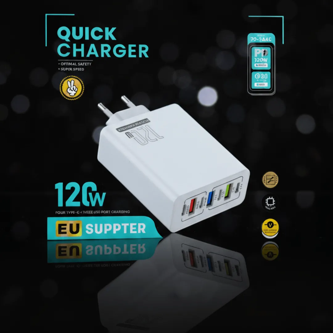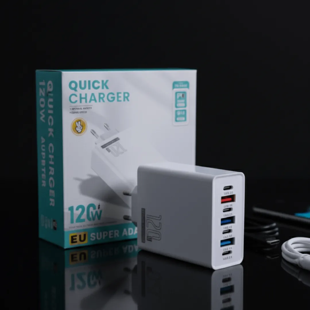Chargeur de voyage 120W multi-ports avec charge rapide pour ordinateur et téléphone