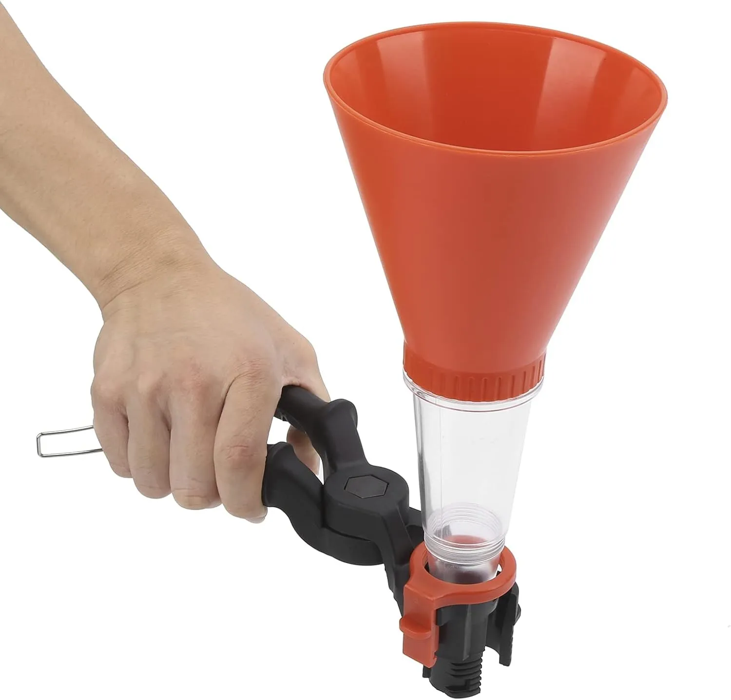 - Pince de Maintien : Comprend une pince de maintien qui sécurise l'entonnoir en place, empêchant les déversements pendant le remplissage.