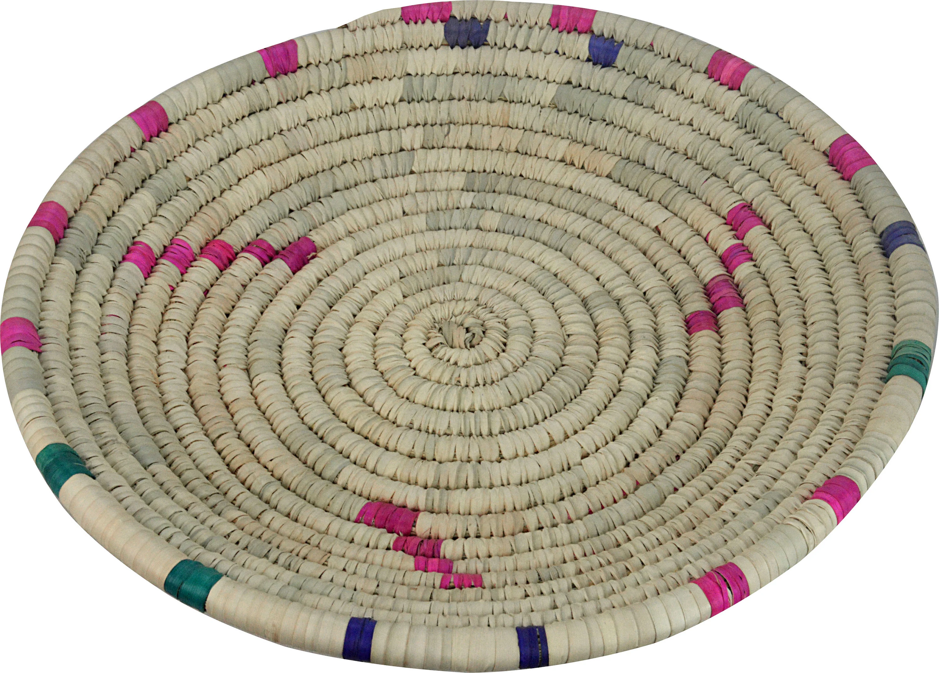 Ce superbe grand plat de service circulaire apporte une touche d'authenticité et d'artisanat traditionnel à votre table. Fabriqué à partir de fibres végétales naturelles soigneusement tissées, il présente une texture tissée à la main détaillée et une structure robuste. Sa forme généreuse est idéale pour servir divers plats, apéritifs, ou même comme élément décoratif sur une console ou un mur.
