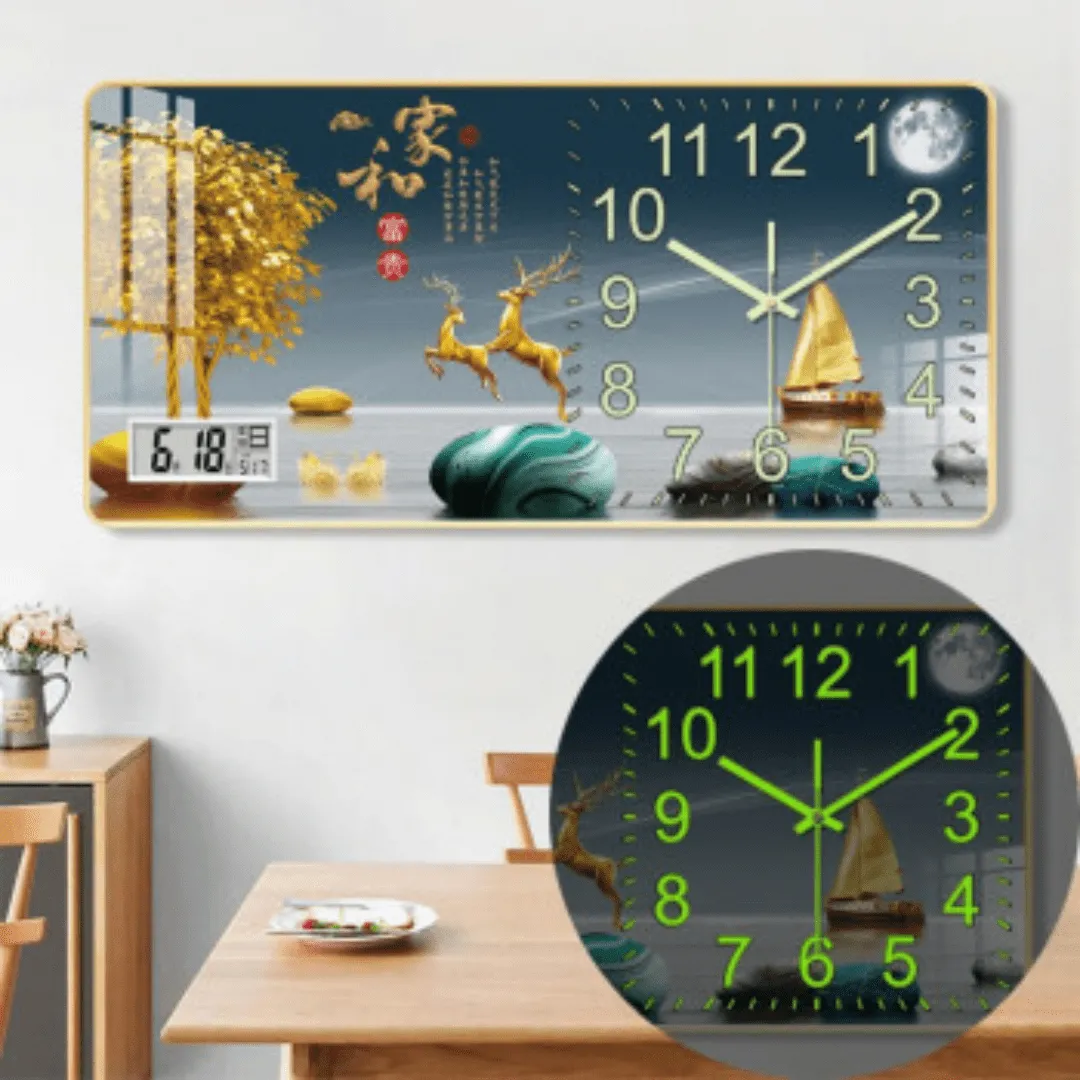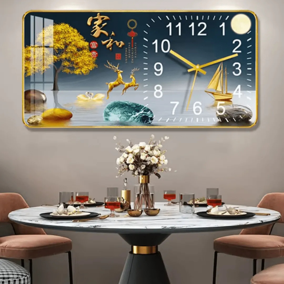 Horloge murale horizontale rectangulaire, décoration moderne et silencieuse pour salon.