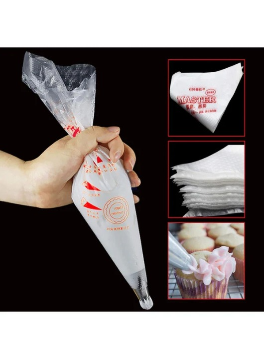 Ensemble de 100 sacs de pâtisserie jetables, pratiques pour décorer gâteaux, cupcakes et desserts avec précision et facilité.