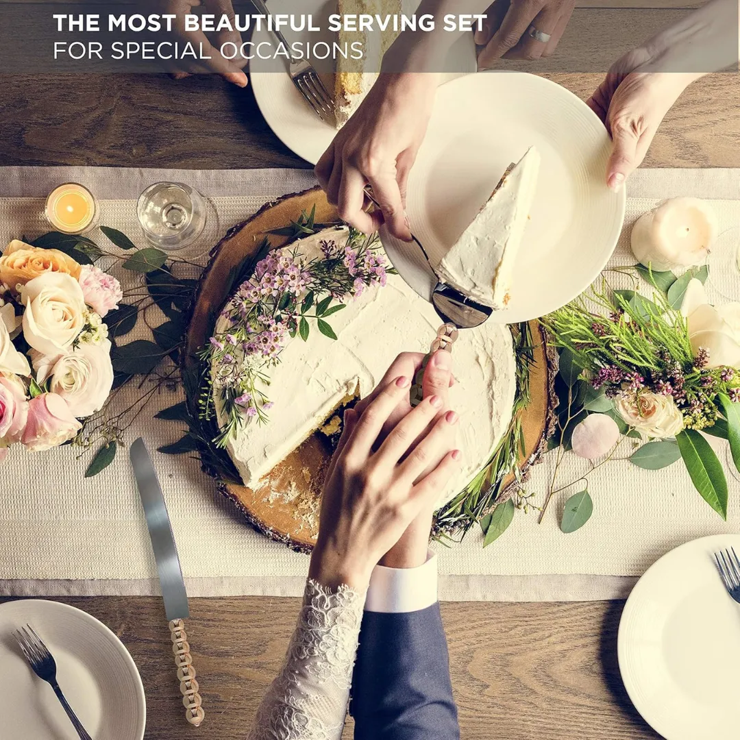 Ensemble de couteaux à gâteaux avec pelle dorée, idéal pour les mariages et les célébrations de Noël.
