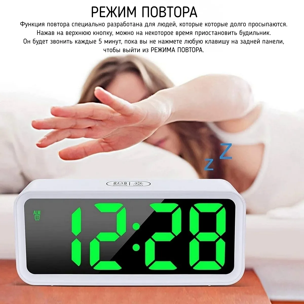 - Fonction de Réveil : Dispose d'une fonction de réveil programmable pour vous réveiller à l'heure souhaitée avec une sonnerie douce ou une alarme sonore.