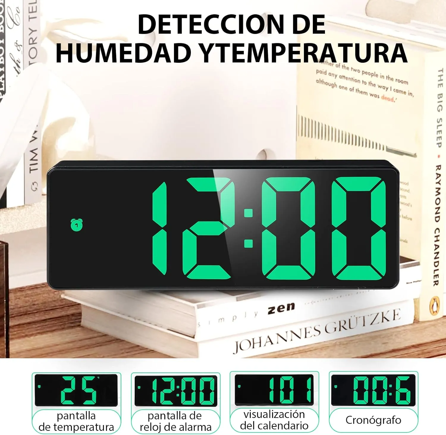 - Affichage de l'Heure, de la Date et de la Température : Affiche simultanément l'heure actuelle, la date et la température ambiante pour une utilisation pratique et informative.