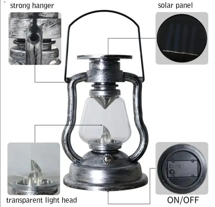 - Énergie Solaire Renouvelable : Alimentée par l'énergie solaire, cette lanterne offre une source d'éclairage respectueuse de l'environnement, avec la possibilité de recharger la batterie intégrée à l'aide de la lumière du soleil.