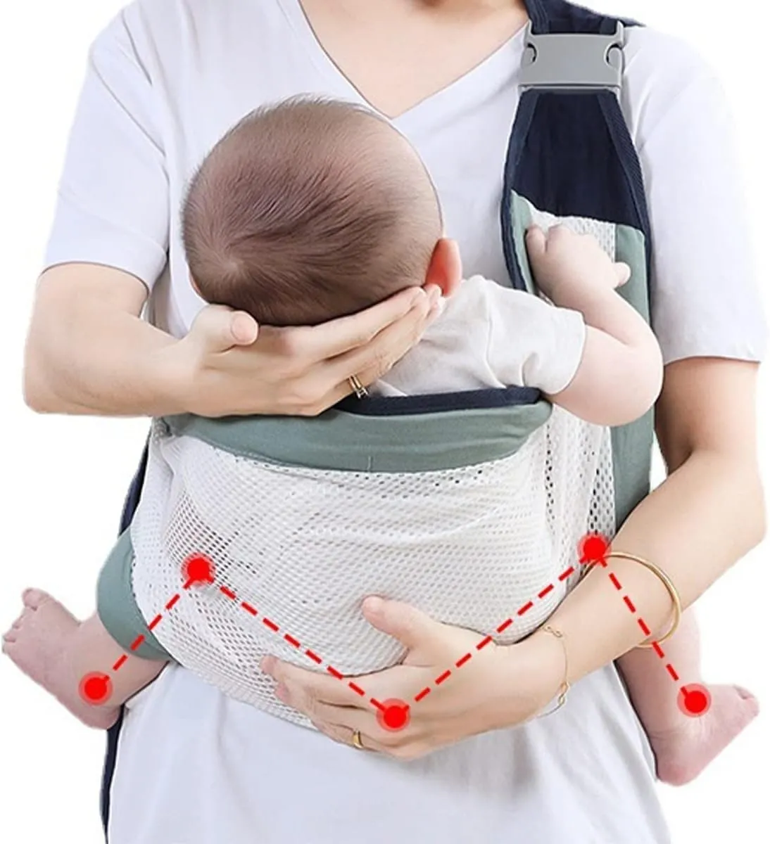 Grâce à ses sangles réglables, ce porte-bébé s'adapte parfaitement à votre morphologie, garantissant une répartition uniforme du poids et réduisant la tension sur vos épaules et votre dos. Facile à installer et à ajuster, il offre une grande liberté de mouvement tout en gardant votre bébé en sécurité et bien protégé. Profitez de moments précieux en toute simplicité avec notre porte-bébé en tissu à mailles, le compagnon idéal pour toutes vos aventures avec bébé.