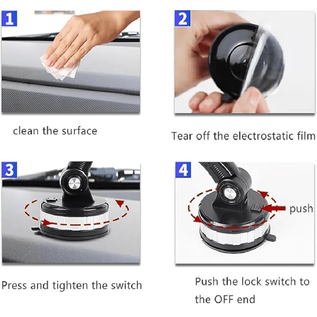 2. La ventouse puissante permet une fixation instantanée sur le tableau de bord ou le pare-brise, offrant une stabilité maximale pendant vos déplacements.