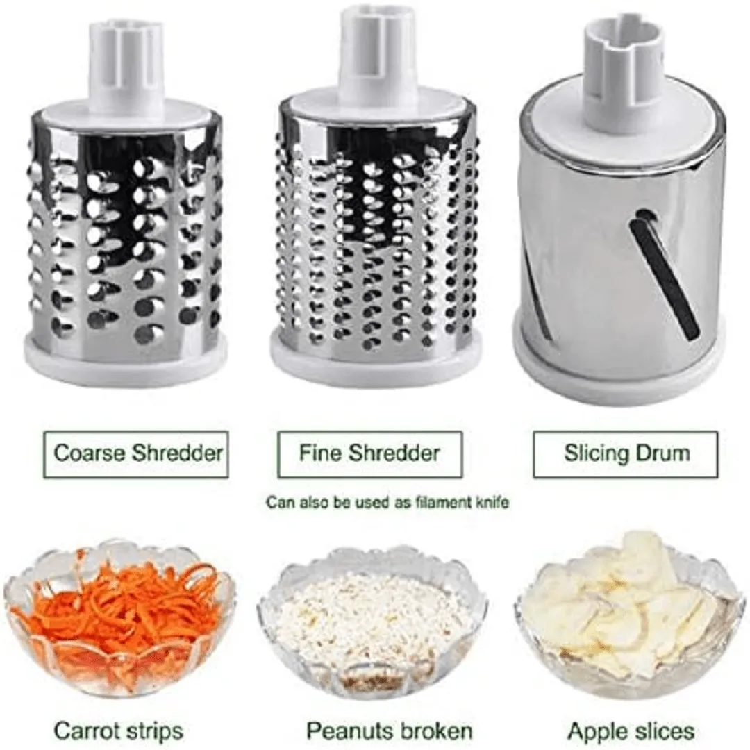 - Comprend 3 disques rotatifs ultra-tranchants différents (1 mouture, 1 soie de coupe, 1 tranche) en acier inoxydable de qualité alimentaire, idéaux pour le fromage, les légumes, les pommes de terre, le colesad, les noix, les rôtis, les oignons et plus encore