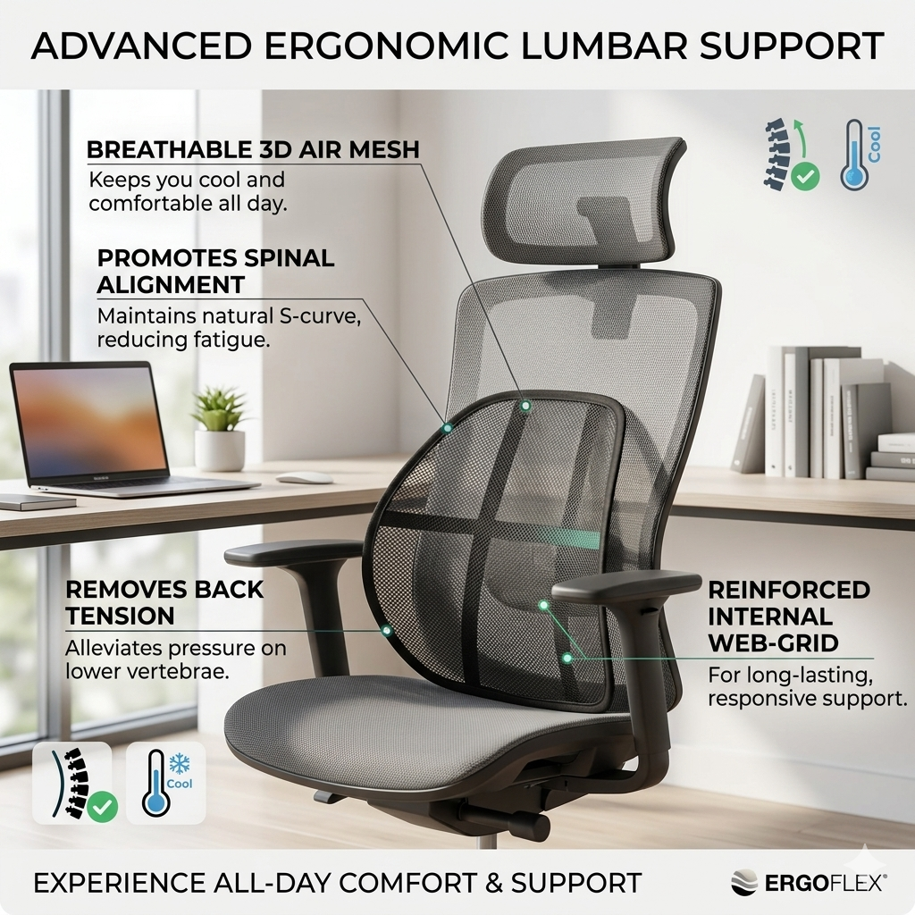 Support lombaire ergonomique idéal pour améliorer la posture et apporter plus de confort lors des longues périodes assises.