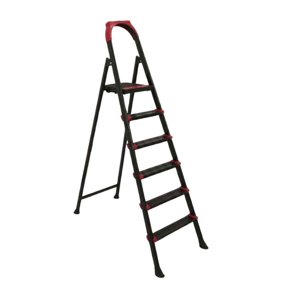 Escabeau en aluminium robuste à 6 marches avec plateforme et main courante intégrée