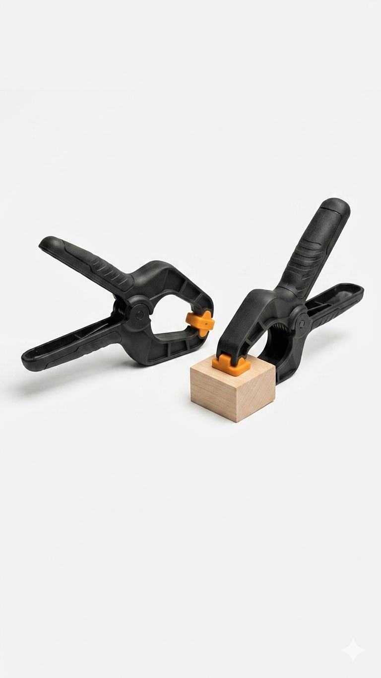 Pince à ressort robuste et pratique conçue pour maintenir fermement divers objets lors des travaux de photographie, bricolage, menuiserie et assemblage.