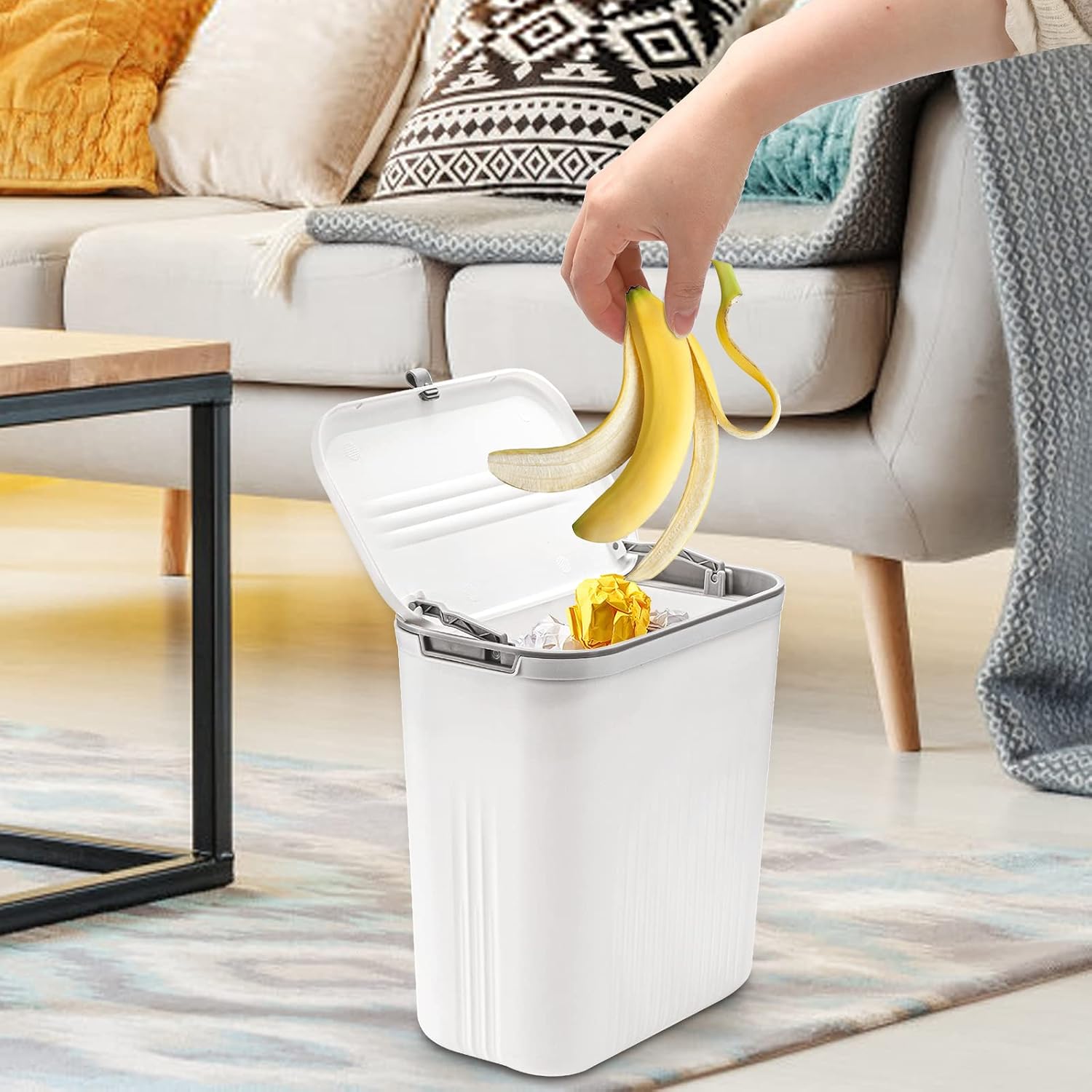 - Contenu de l'emballage : 1 poubelles de cuisine blanches et grises avec couvercle. Dimensions : 25,7 cm (L) x 15,5 cm (l) x 28,4 cm (H). Capacité : 9 litres. Format idéal pour ranger dans les placards, sous les plans de travail, sous les éviers et autres petits espaces.