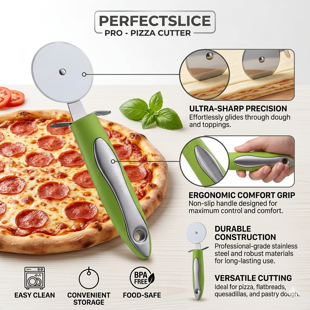 Roulette de cuisine résistante et pratique pour découper facilement pizzas et pâtisseries avec confort et précision.