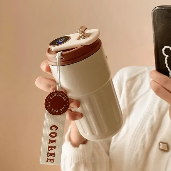 Tasse à café isotherme en inox avec affichage digital – Double paroi et couvercle portable (colleur aléatoire)