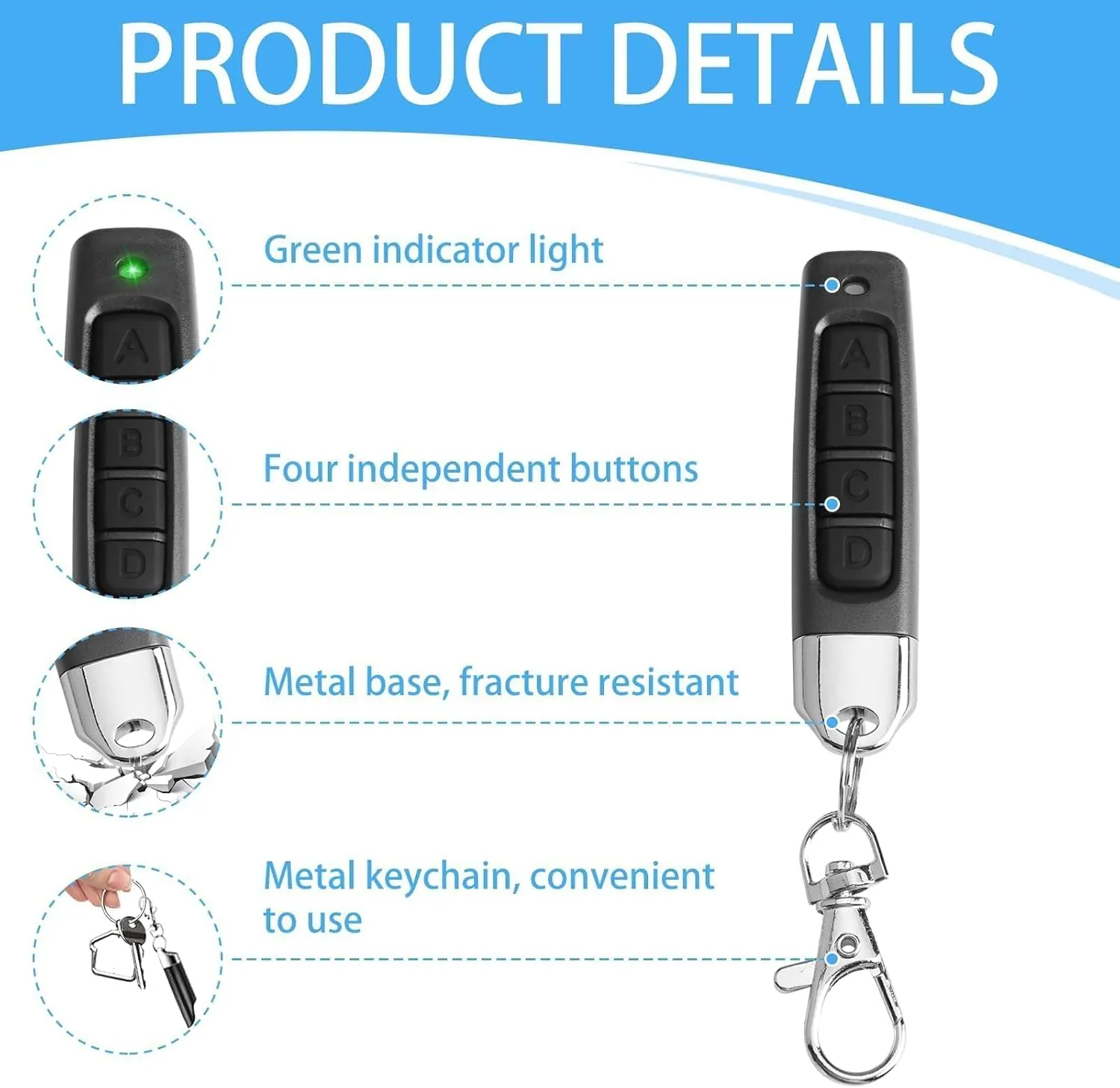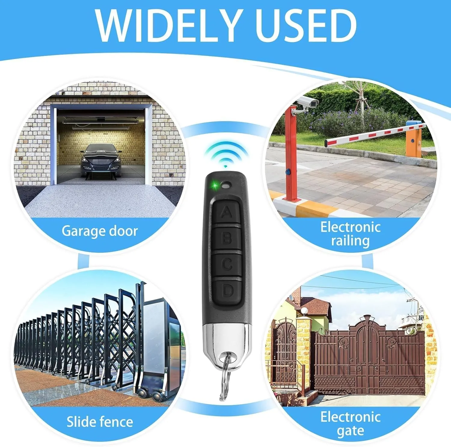 Télécommande universelle 433 MHz, conçue pour contrôler facilement les portails et portes de garage, pratique et fiable pour un usage domestique.